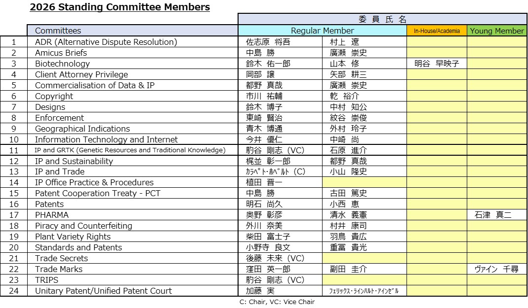 | Young AIPPI members Committee (YAC) | ヴァイン 千尋 氏 |
